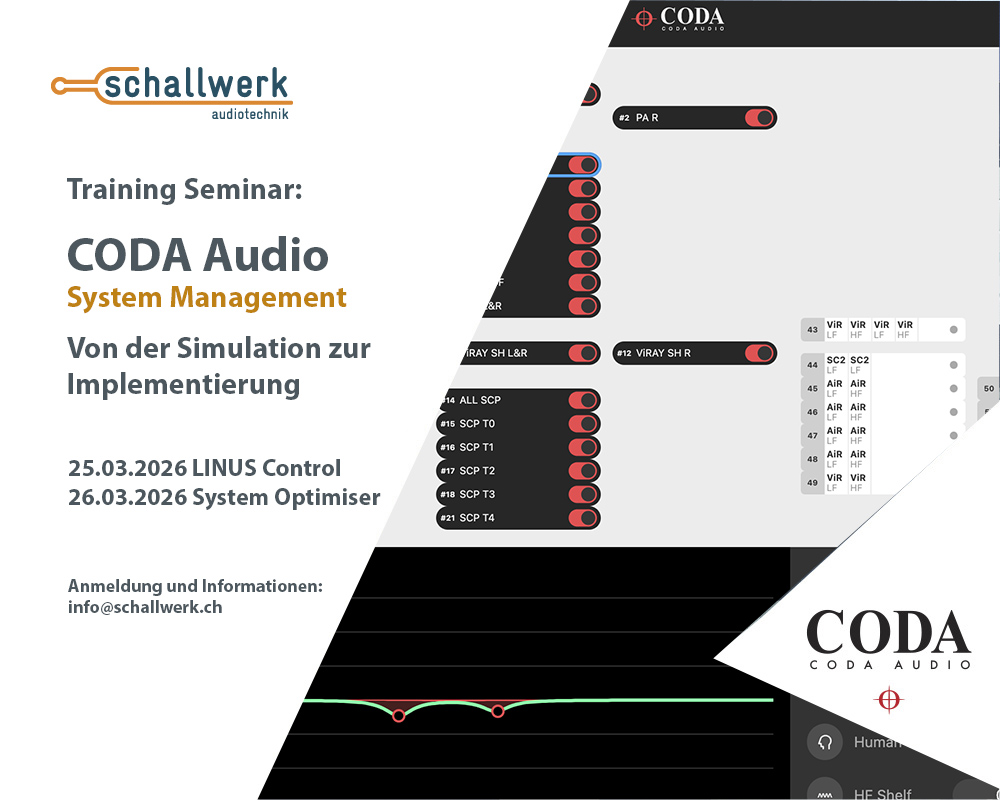 Lerne in diesem zweitätigen Seminar das CODA Audio Ökosystem vertieft kennen. Wir geben Dir einen Überblick über das Portfolio und die Technologien, die CODA Audio so einzigartig machen: wie funktioniert das Zusammenspiel zwischen einzelnen Komponenten der Systeme, was muss beachtet werden (Time Alignment, Crossover, Leistung etc). Wir werfen auch einen kurzen Blick auf das Rigging und Handling beim Fliegen und Stacken.